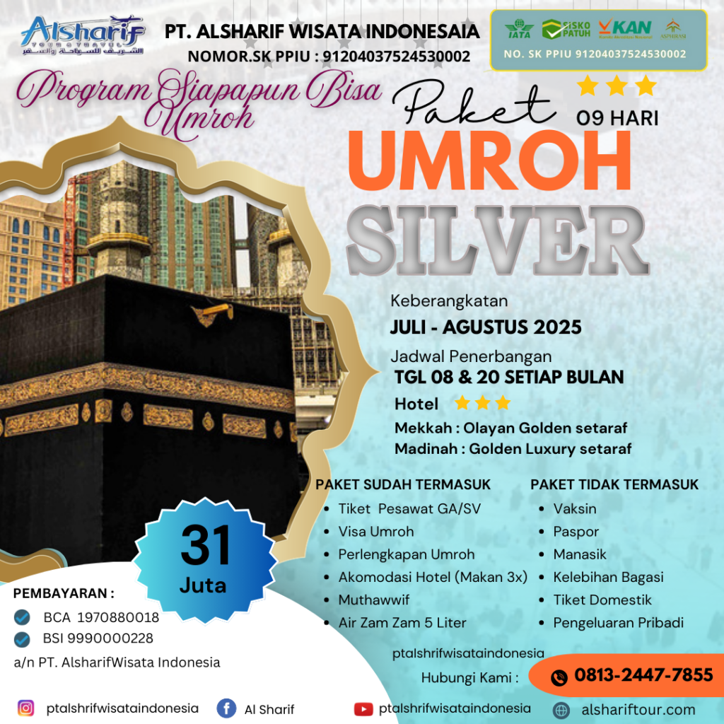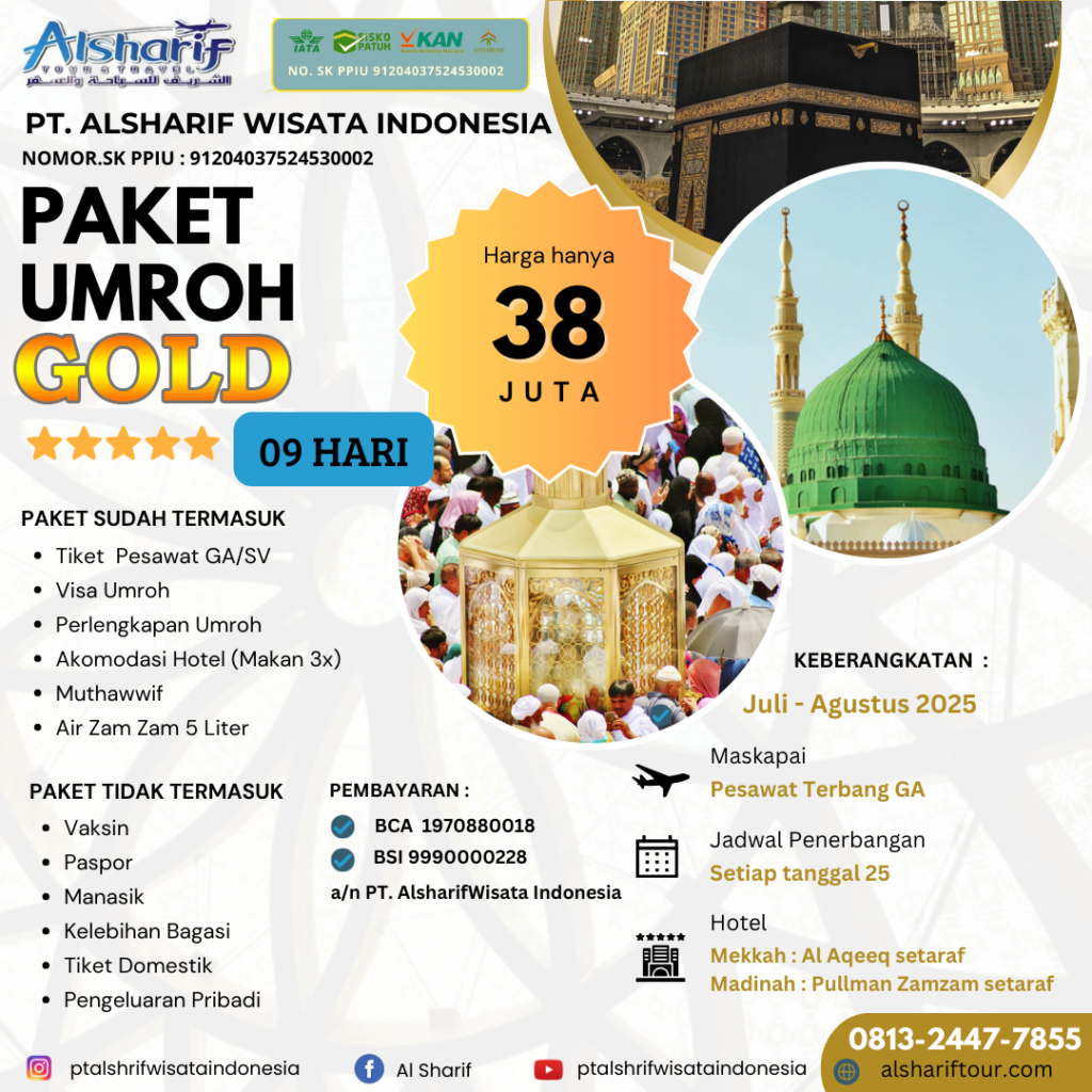 Alsharif Tour & Travel, mitra terpercaya Anda dalam mewujudkan impian perjalanan spiritual ke Tanah Suci. Berdiri dengan semangat memberikan layanan terbaik sesuai syariah, kami hadir untuk mempermudah perjalanan umroh dan haji Anda dengan aman, nyaman, dan berkesan.
